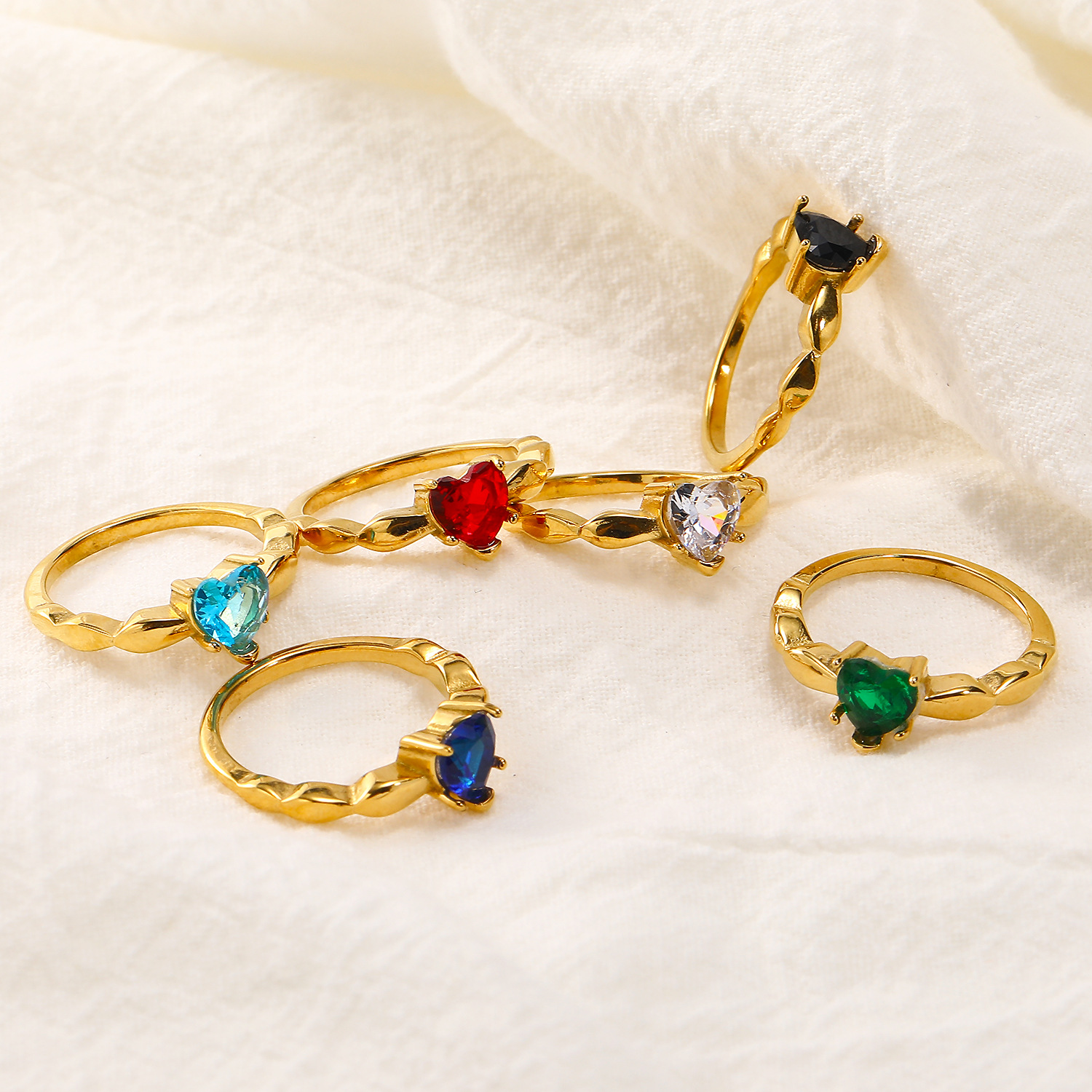 Niche INS temperament heart-shaped zircon titanium steel women's ring trend simple Joker high-end feeling food finger ring wholesale