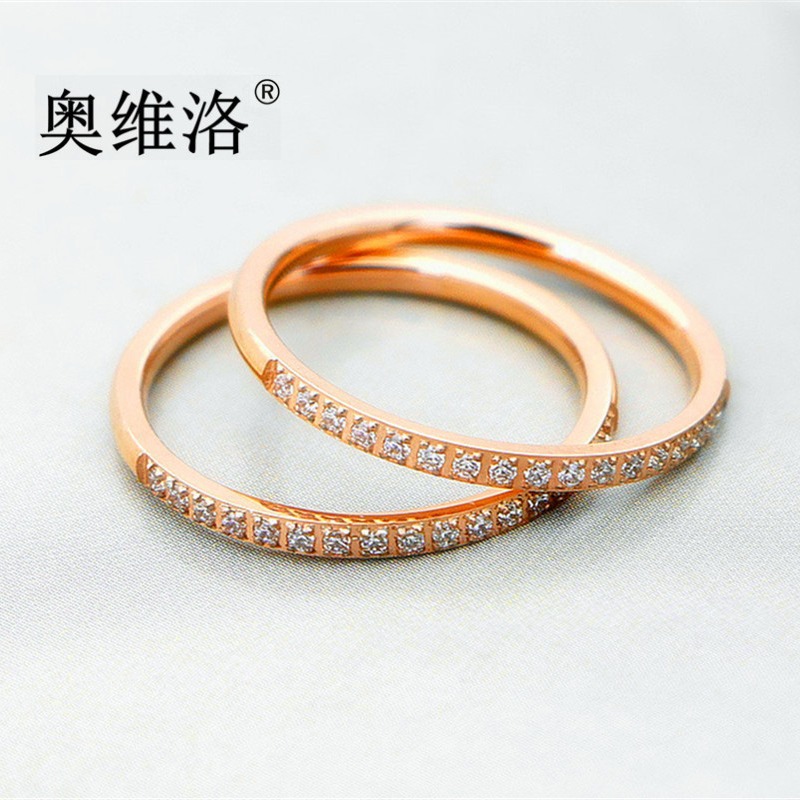 Aowello Korean-Style Steel Jewelry High-End Rose Gold Micro-Inlaid Women's Light Luxury Fashion Ultra-Thin Single Ring Trendy Exquisite Ring