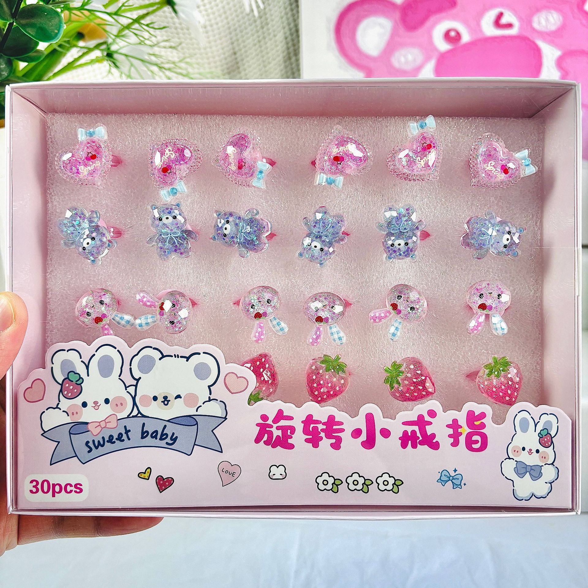 Children's Rotatable Luminous Ring Cartoon Animal Strawberry Flower Girl Jewelry Gift Box Kindergarten Small Gift