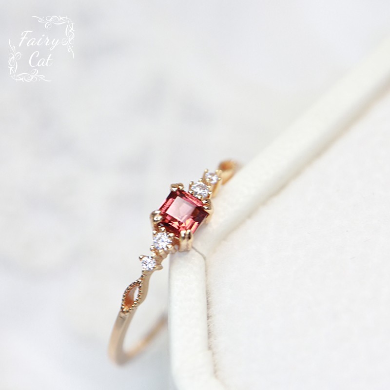 Japanese style inlaid anti-red garnet ring female ins exquisite square ring light luxury style all-match girl gift