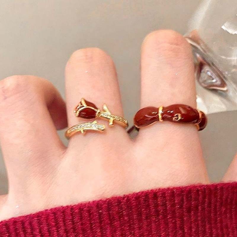 Burgundy Rose Zircon Ring for Women 2026 New Trendy White-Enhancing Index Finger Ring, Elegant Stackable Adjustable Ring