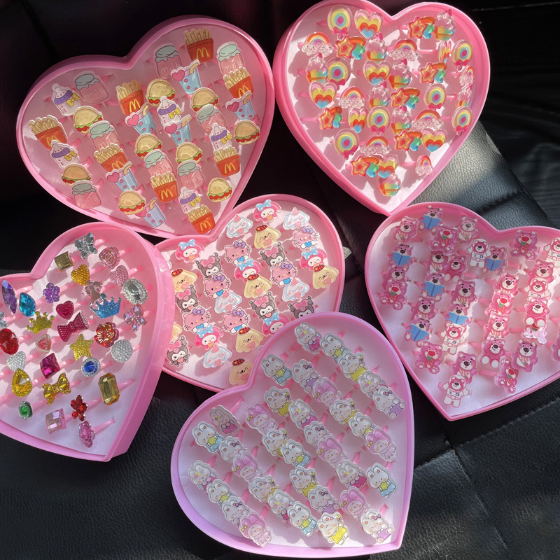 Children's Cartoon Plastic Gem Ring Little Girl Jewelry Girl Baby Holiday Gift Adjustable Ring Bracelet