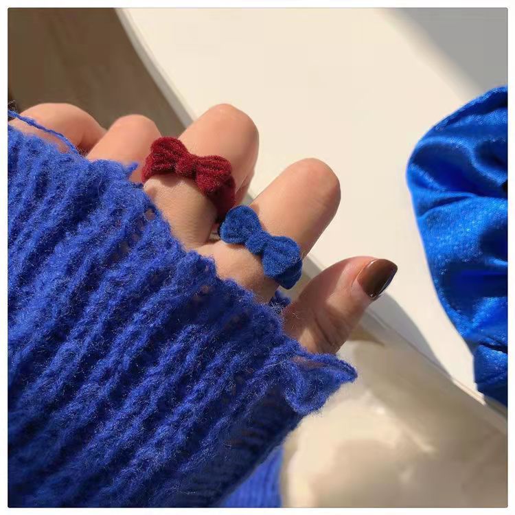 Klein Blue Ring ~ Flocked Bow Open Ring Sweet Girl Ins Sweet Fashionable Index Finger Ring Trend
