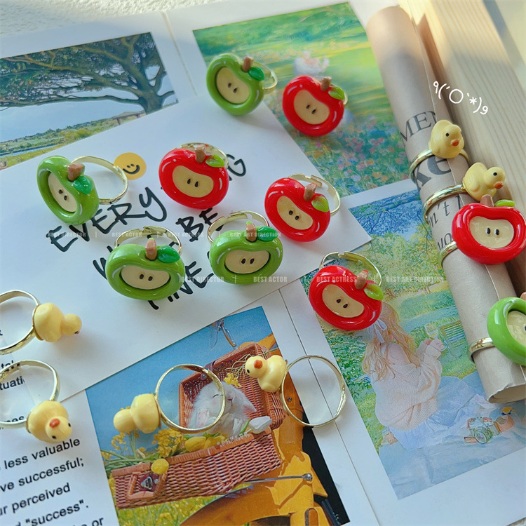 2024 New Explosions Summer Girls Cute Creative Apple Ring Opening Adjustable Girlfriend Joker Ring