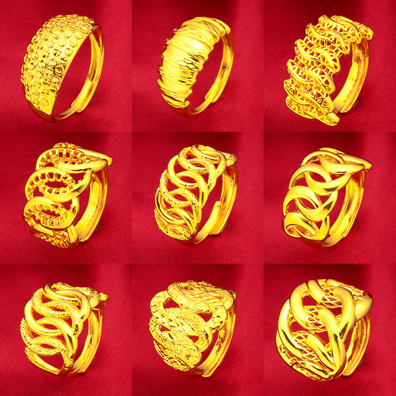 Vietnamese Sand Gold Girls Fashion Ring Twist Cross-Border Jewelry Ring Open Sand Gold Wide Edge Ring