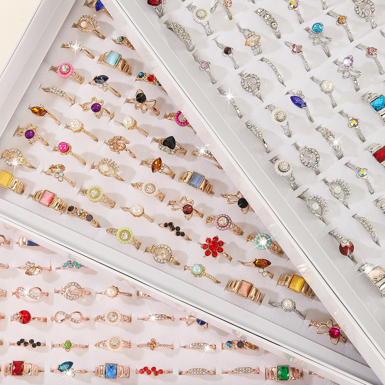 Yiwu one yuan commodity Korea new Rhinestone ring girl ring index finger joint ring tail ring 2 yuan store hot sale