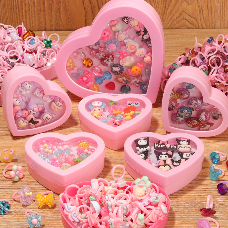 Children's Cartoon Ring Love Ornament Ring Small Fresh Girl's Resin suit Jewelry Kindergarten Gift Box