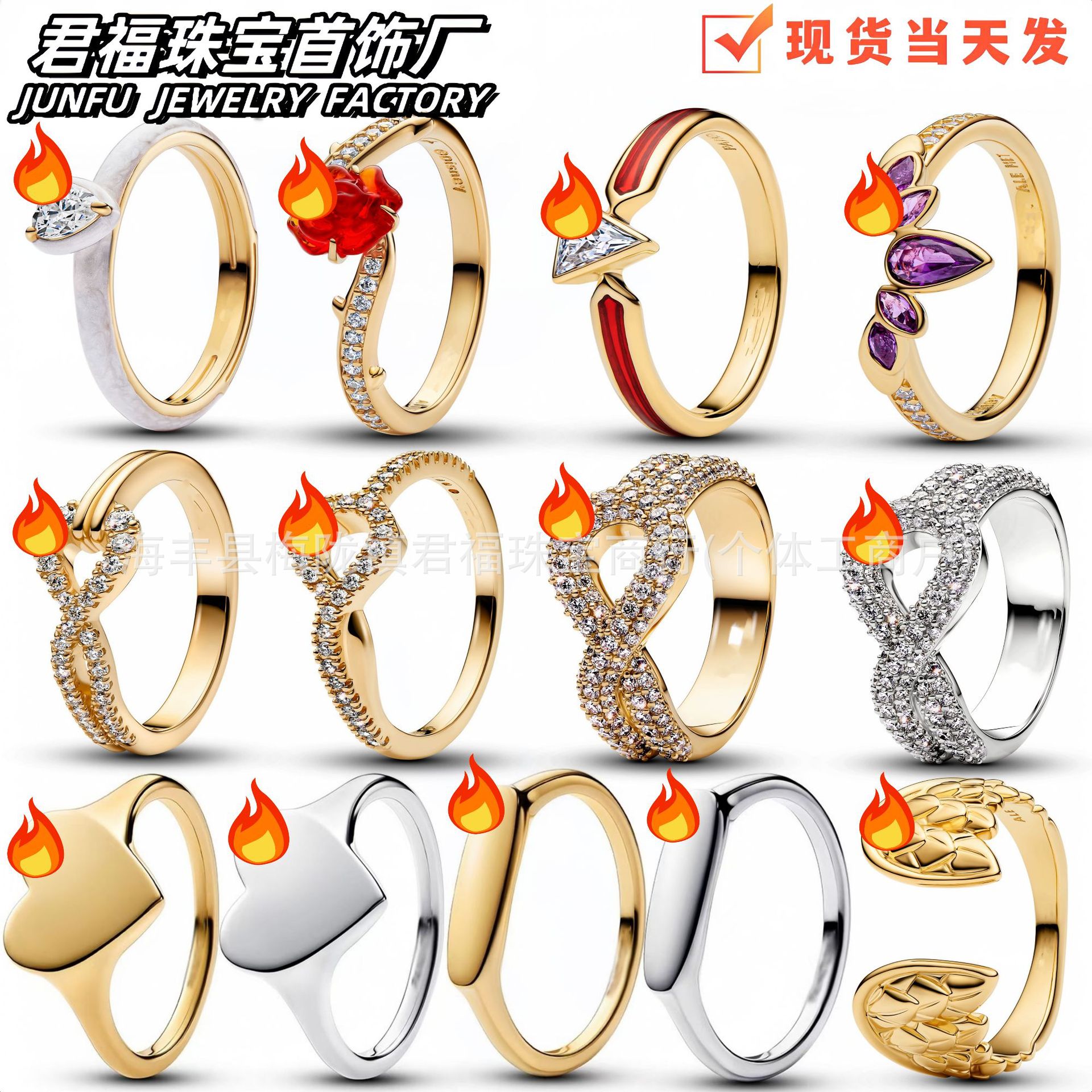 Cross-Border New Panjia White Copper Plated S925 Silver Heart Crown Pair Ring Bow Ring Women's Ring Factory Direct Sale