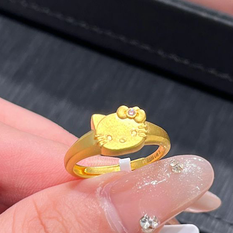 Xiaohongshu's Popular Cute Kitty Cat Ring 2025 New Ancient Sand Gold Katie Cat Exquisite Ring for Women