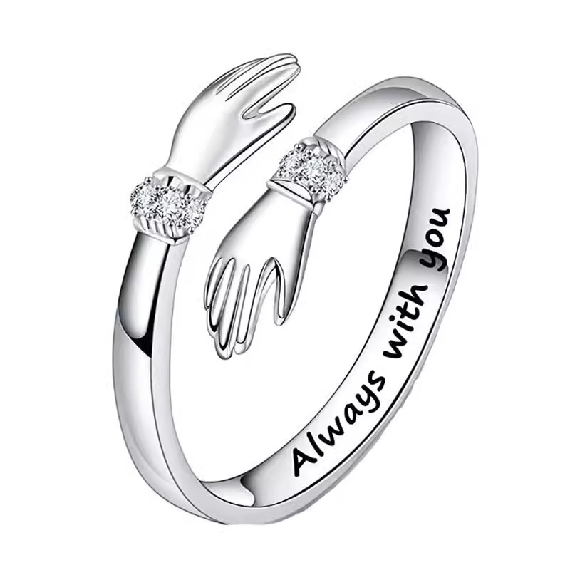 Two-hand hug ring female European and American creative love hug opening adjustable ring warm heart jewelry wholesale