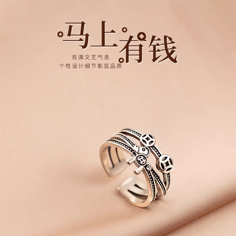 Make Money Immediately Ring Women's Index Finger Ring Literary and Artistic Elegant Work Clothing Ring Retro Exquisite National Style Opening Adjustable