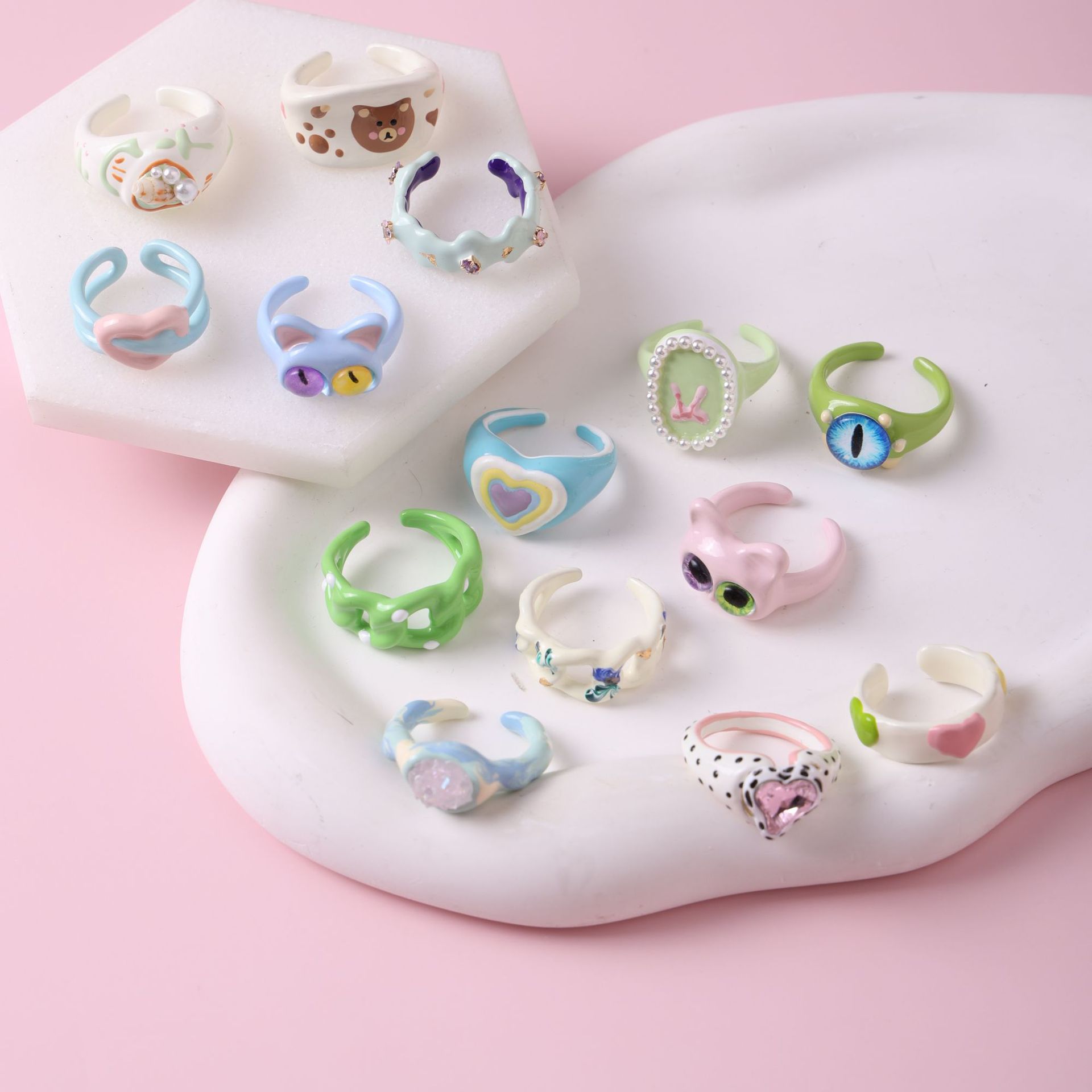Cute Glasses Baby ~ ins Japanese and Korean Mori Girl's Open Ring Adjustable Enamel Colored Finger Ring Buckle Tail Ring