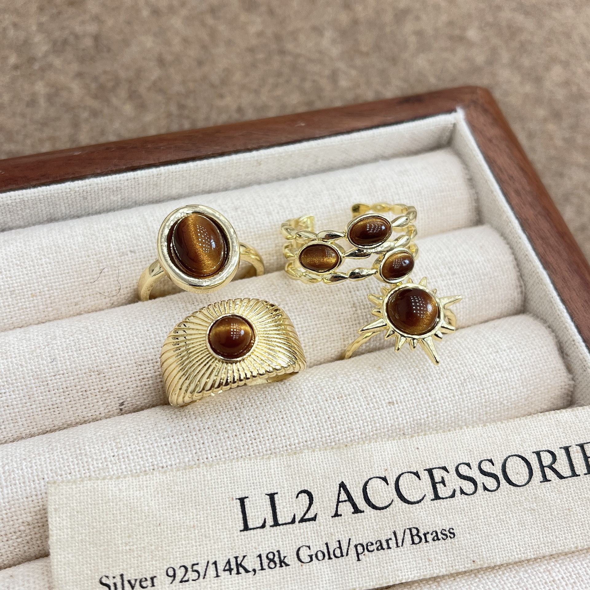 Golden Retro Tiger Eye Stone Opening Ring Women's Western Ethnic Style Unique Personality Finger Ring Light Luxury Niche Ring