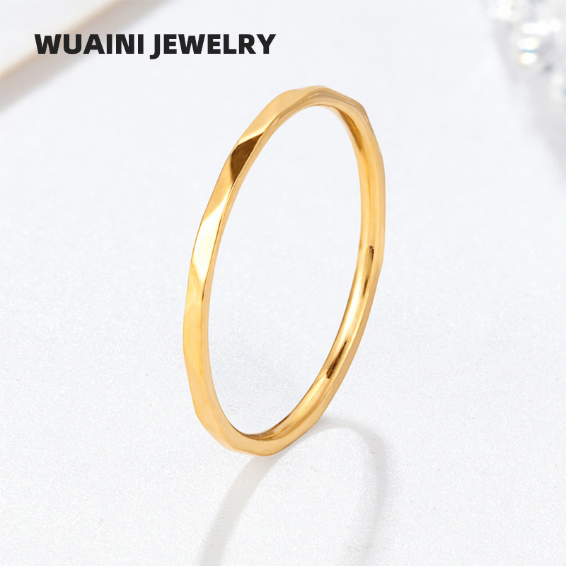 Simple diamond pattern extremely fine plain ring ring female minority non-fading ring titanium steel electroplating real gold accessories wholesale