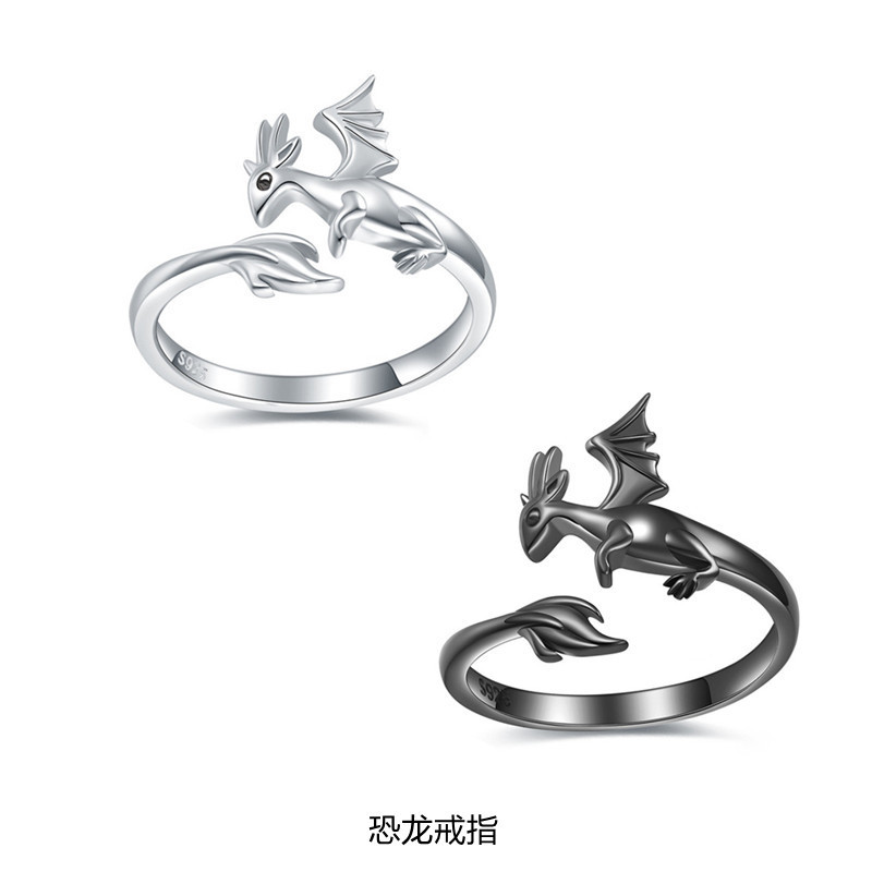 European and American black dragon ring women Girl animal jewelry adjustable dinosaur thumb ring Mother's Day gift