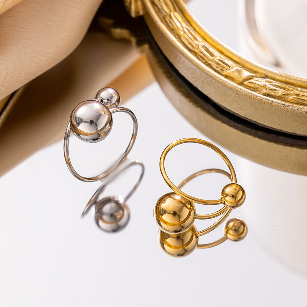 Minimalist Design Large and Small Balls Steel Balls Open Titanium Steel Ring Girls Simple Versatile Ring Does Not Fade Cross-Border Foreign Trade