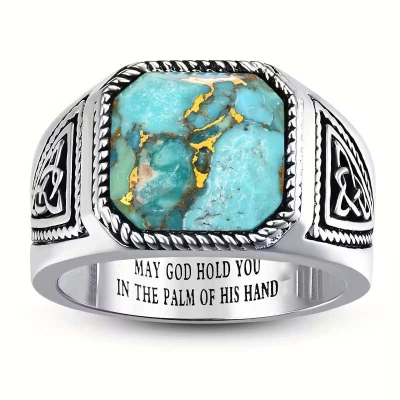 European and American Cross-Border Jewelry Geometric Square Aquamarine Zircon Ring for Women Retro Texture Punk Hip-Hop Ring for Men