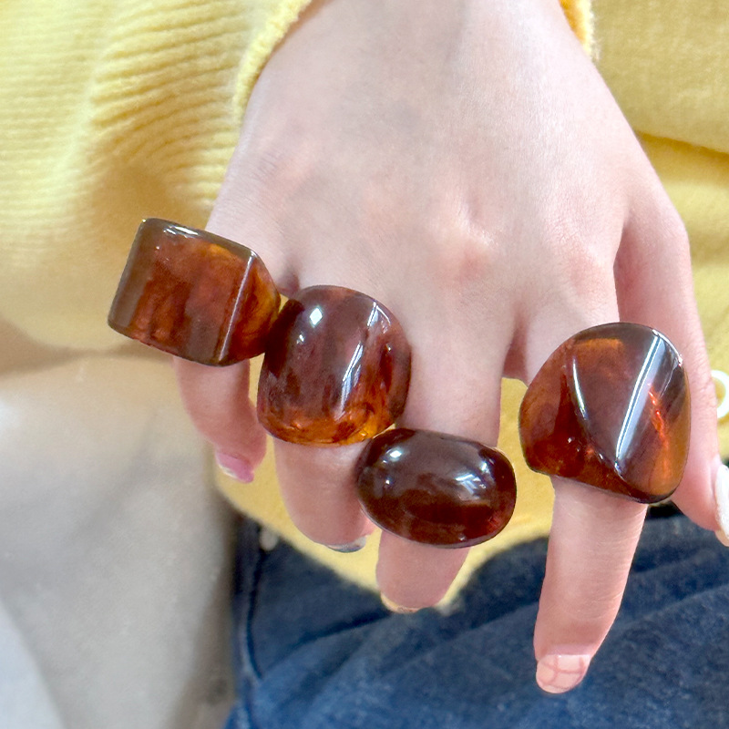 Yuyu New Niche Unique Geometric Vintage Resin Ring Women's Personalized High-grade Amber Index Finger Ring