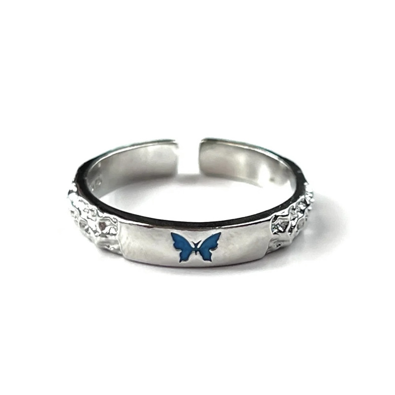 Red Riding Book Same Style Blue Butterfly Ring Women's Niche Light Luxury High-Level Finger Ring Simple Texture Open Ring
