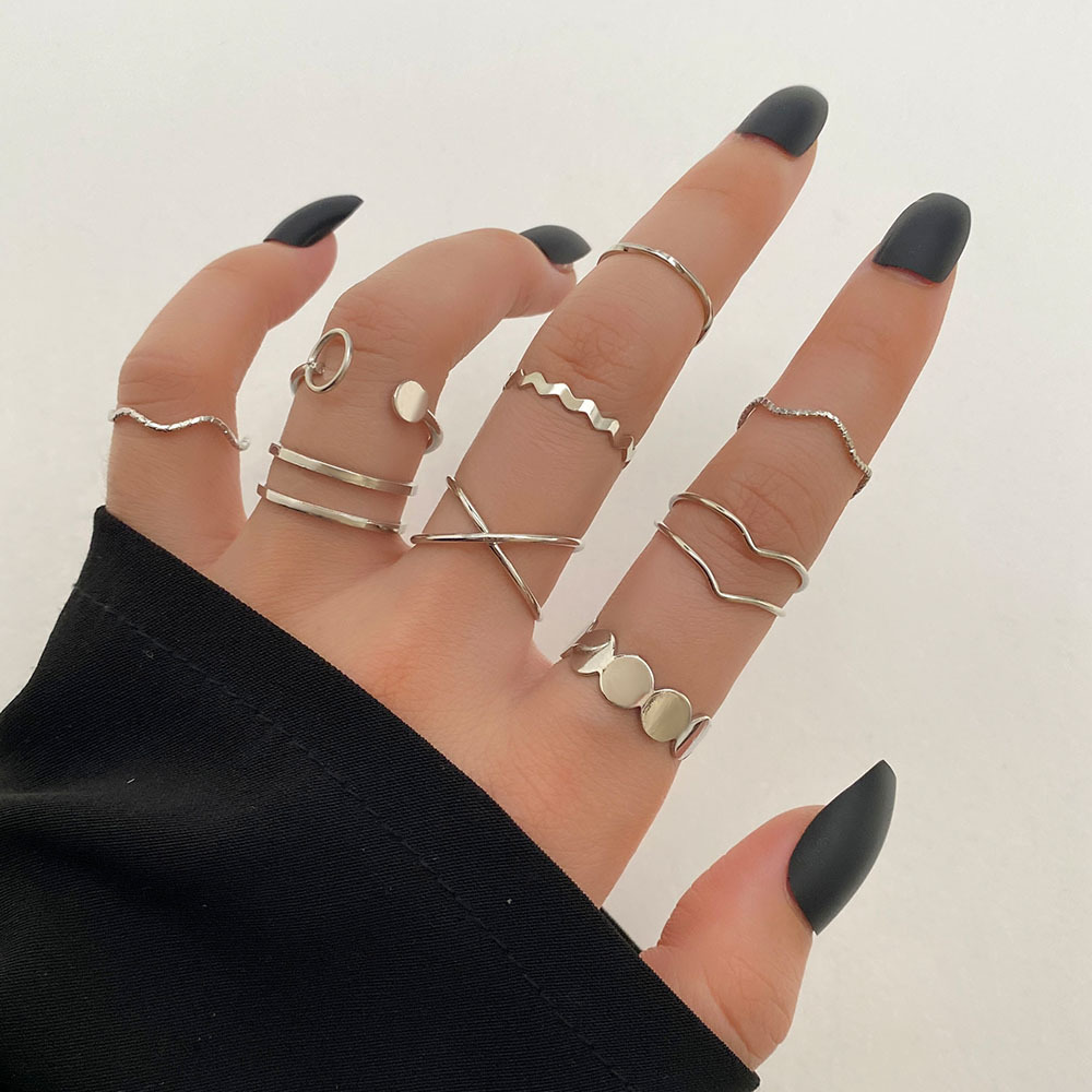 Mushang Cross-Border New Environmentally Friendly Ring Set Female Niche Personality Simple Water Wave Cross Ring 10-Piece Set Wholesale