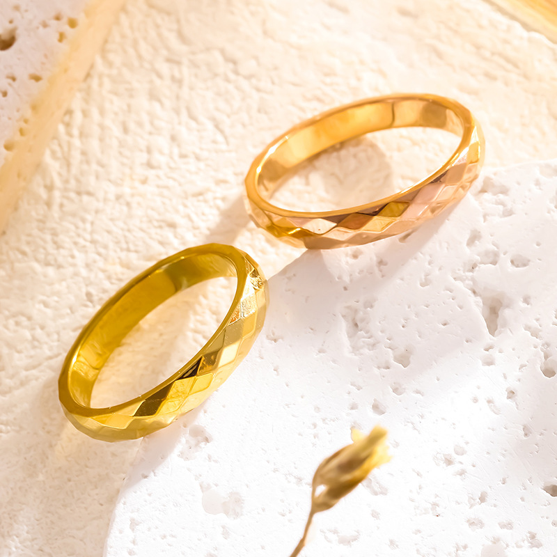 Internet Celebrity Popular Fashion 3mmV-shaped Wave Flower Ring Light Luxury Cold Wind Ring Diamond Plaid Titanium Steel Ring for Women