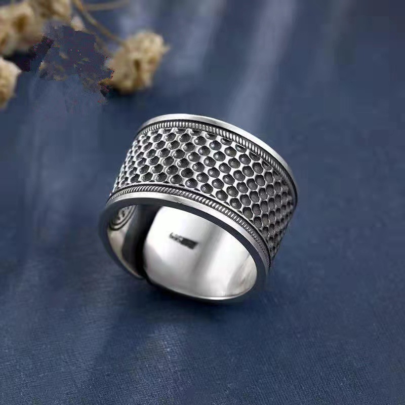 Imitation silver thimble ring retro auspicious ruyi ring anti-prick hand thimble sewing silver finger hoop thimble hoop for women