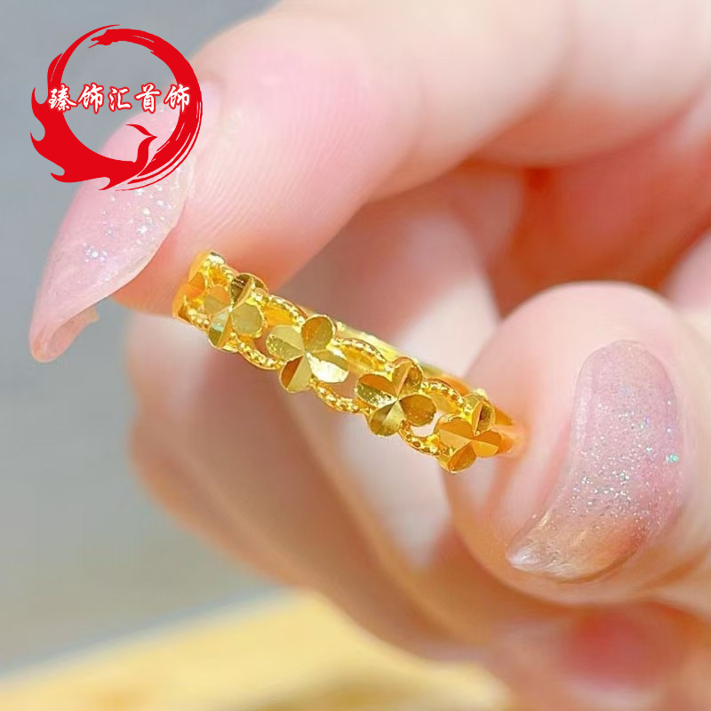 Vietnam Sand Gold Four-leaf Clover Ring Women's Little Red Book New Fashion Copper Gold-plated Star Ring Jewelry Shake Voice Live