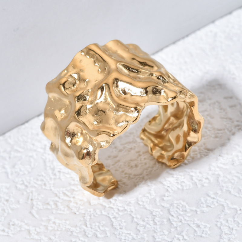 European and American Stainless Steel Exaggerated Irregular Texture Face Ring High-grade Sense Ins Ring Light Luxury Niche Ring Ring for Women