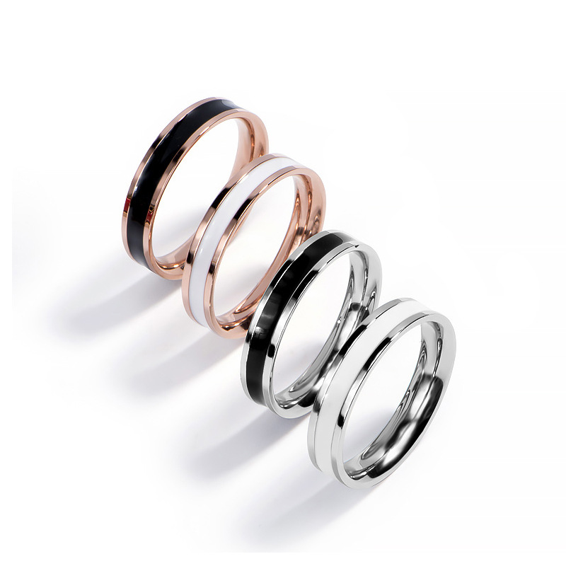 Stainless Steel Fashion Ring for Women, Simple Rose Gold Black and White Resin Couple Tail Ring, Matching Couple Rings