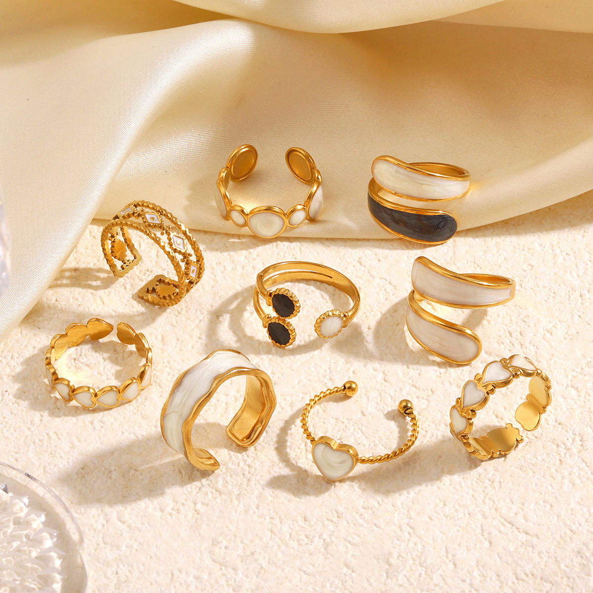 Cross-Border European and American Personalized 18K Gold-Plated Titanium Steel Ring for Women Adjustable Oil Dripping Stainless Steel Heart Simple Cold Style
