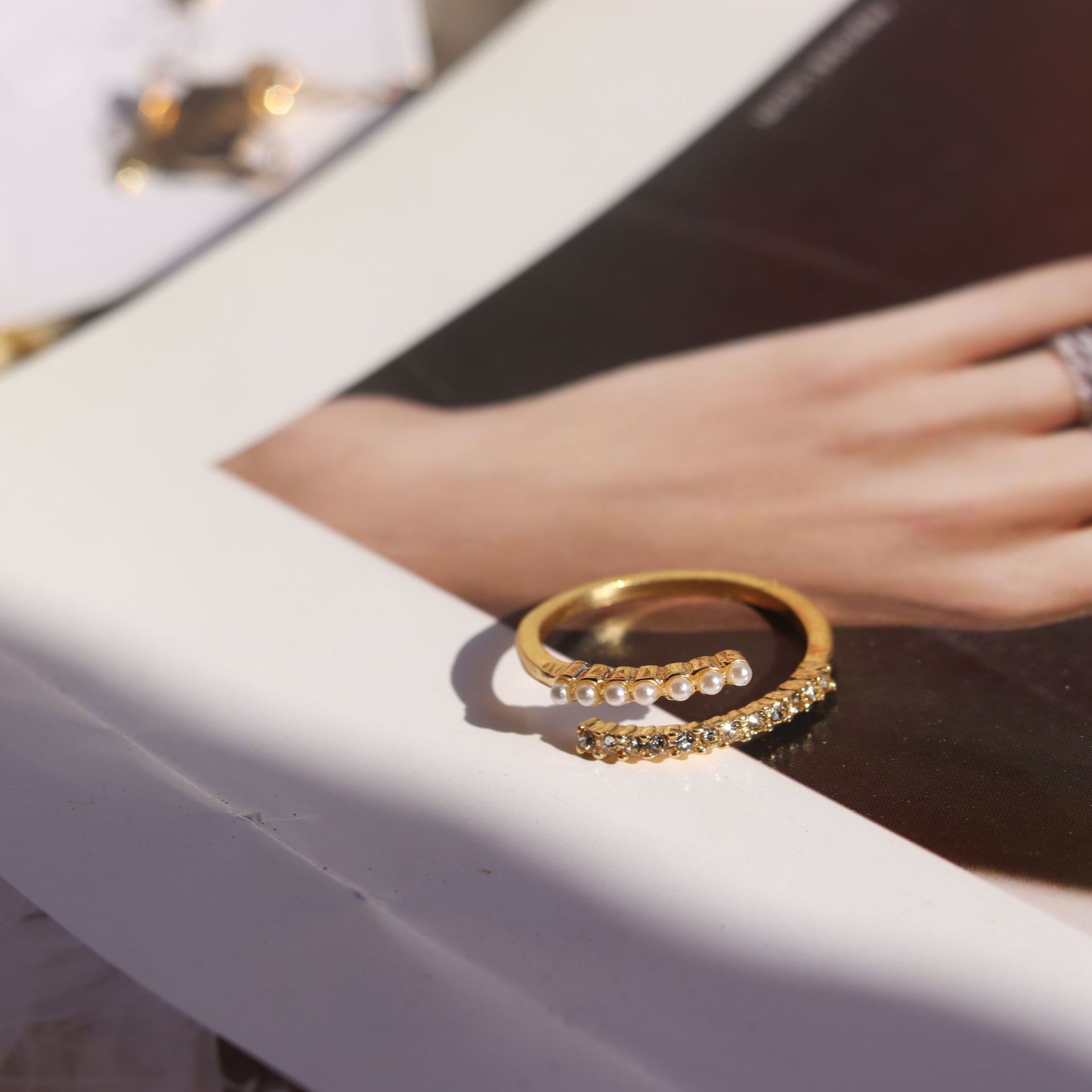 Pearl Ring female fashion personality index finger ring ins popular Net Red cold style Japanese style light luxury fashion plain ring 343