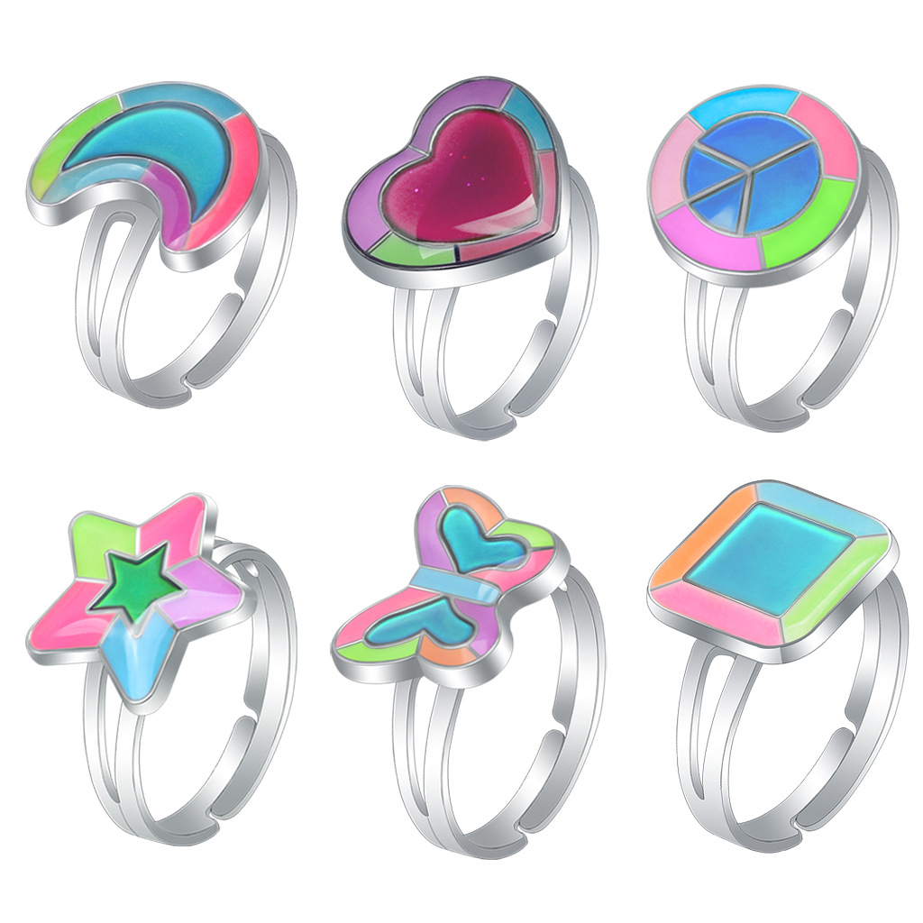 Women's Personality Luminous Peach Heart Love Butterfly Moon Warm Magic Color Lights Fingertips Mood Color Changing Ring Manufacturers