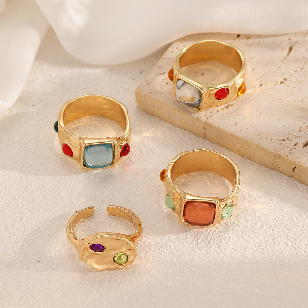 European and American Ring Set Sweet and Cool Style Diamond Ring Set Women's Liquid Diamond Glossy Ring Geometric Rhinestone Ring