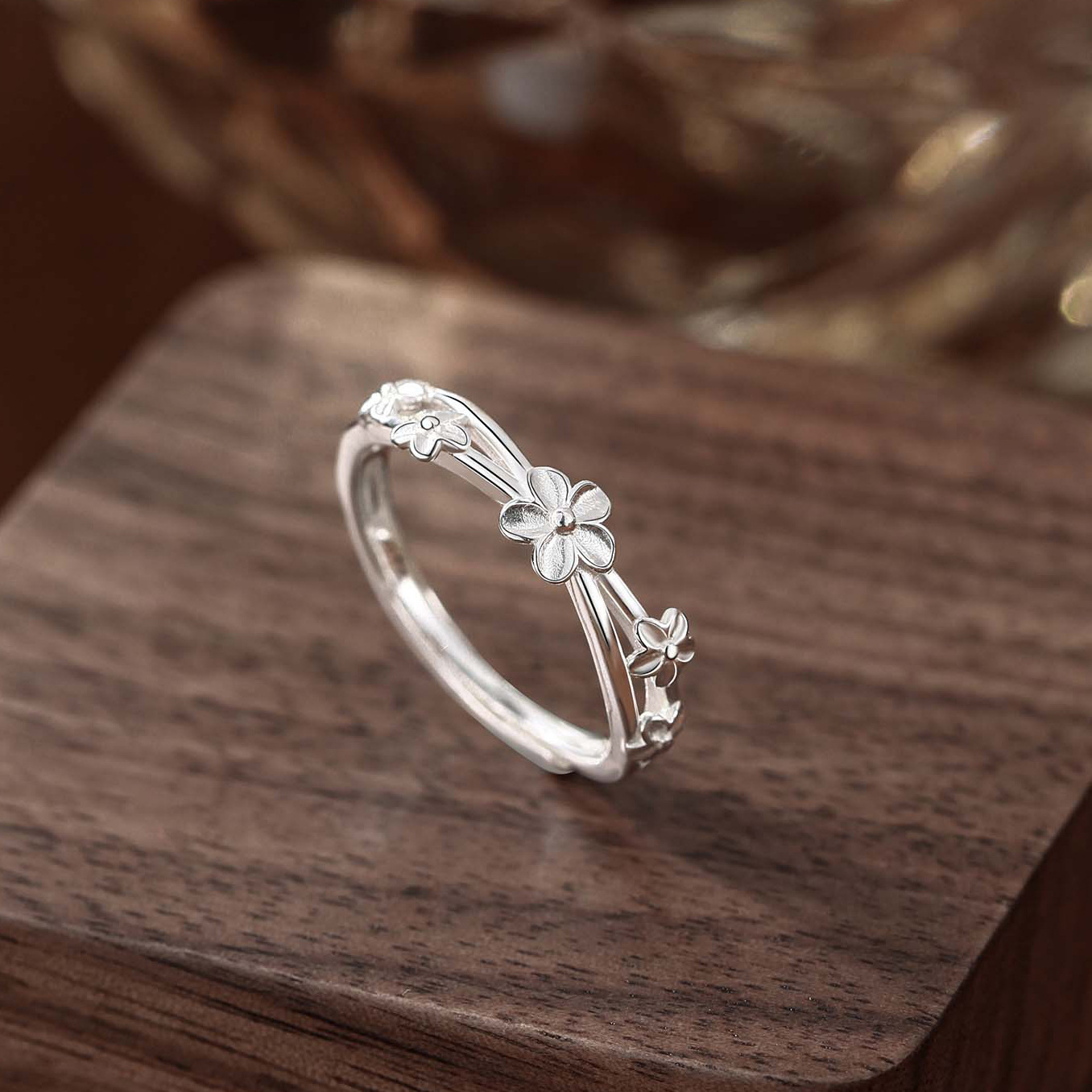 S999 Sterling Silver Foot Silver Small Fresh Flower Ring Women's INS Light Luxury Creative Cross Tenge Adjustable Ring Ring