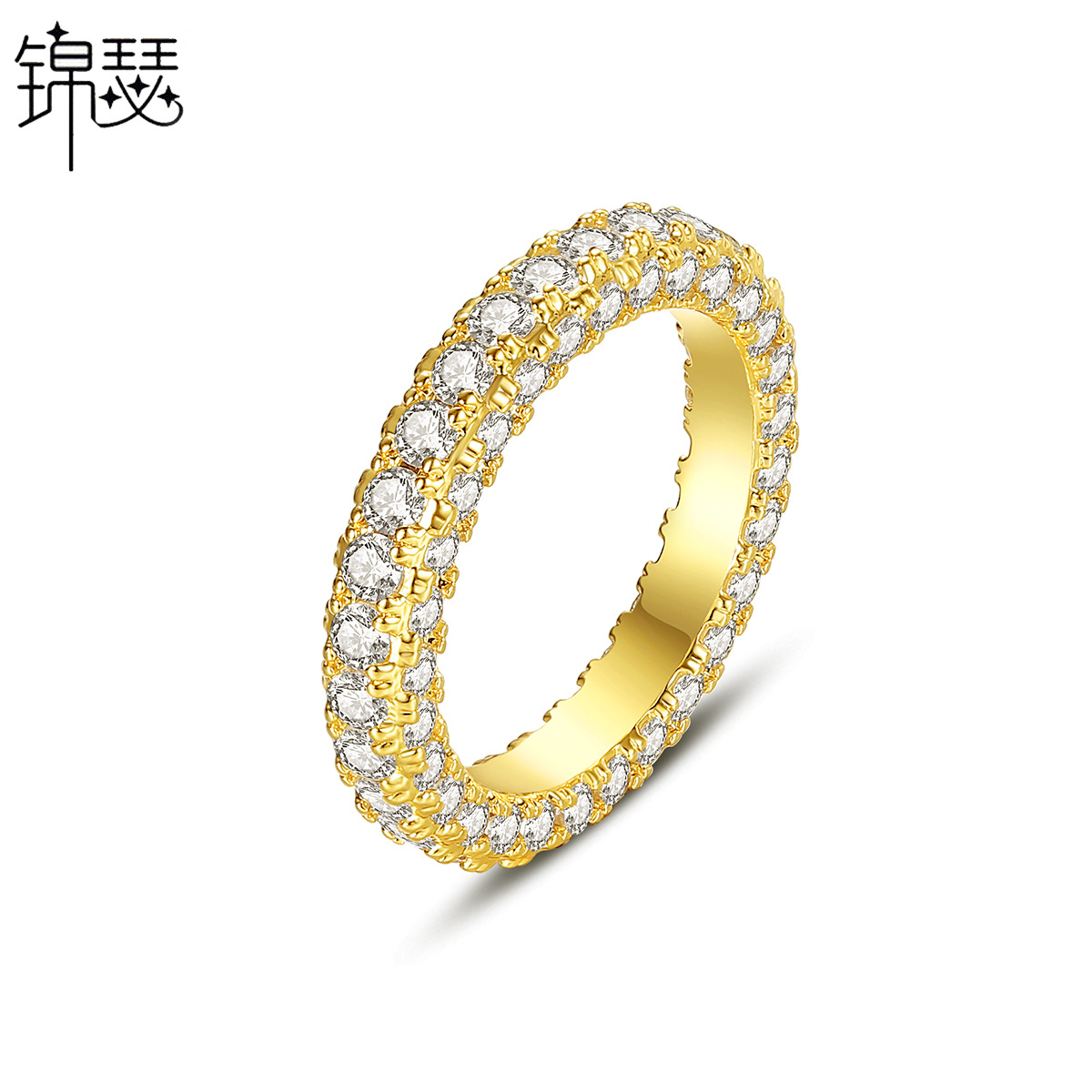 Jinse micro inlaid zircon ring female light luxury fashion full diamond ring brass niche ins design single row diamond jewelry