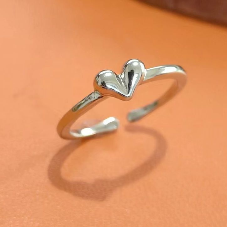 Thai Silver Stereo Heart Ring for Women 2024 New Style Personalized Design Open Ring Simple and Versatile Ins Jewelry