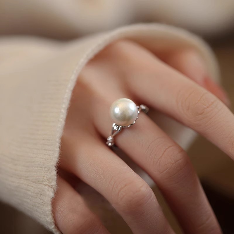 Jinruixi Niche Design Pearl Ring for Women, Minimalist Fashion, Unique Light Luxury Versatile High-End Index Finger Ring