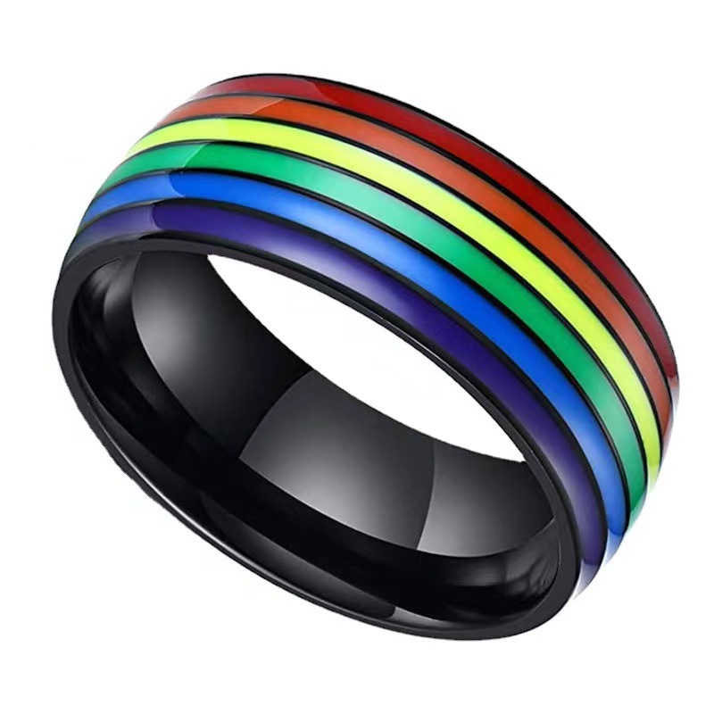 Cross-Border Amazon Best-Selling Rainbow Flag Couple Titanium Steel Ring Female European and American Popular Stainless Steel Jewelry Color Ring