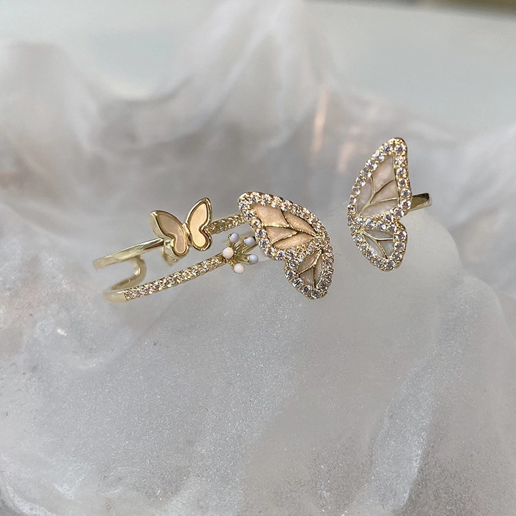 High-class temperament Fairy Butterfly flower opening ring women's fashion personality light luxury niche exquisite food finger ring