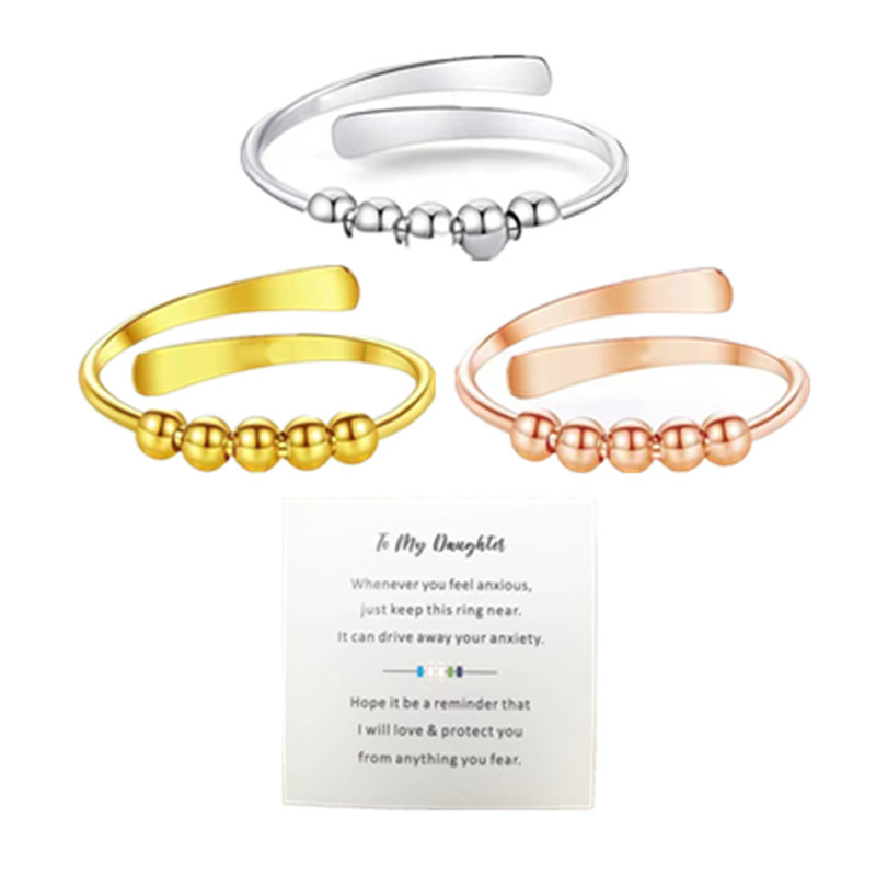 Cross-border New Style Rotating Micro Bead Anxiety Ring Women's Simple Single-turn Spiral Bead Anti-pressure Adjustable Ring