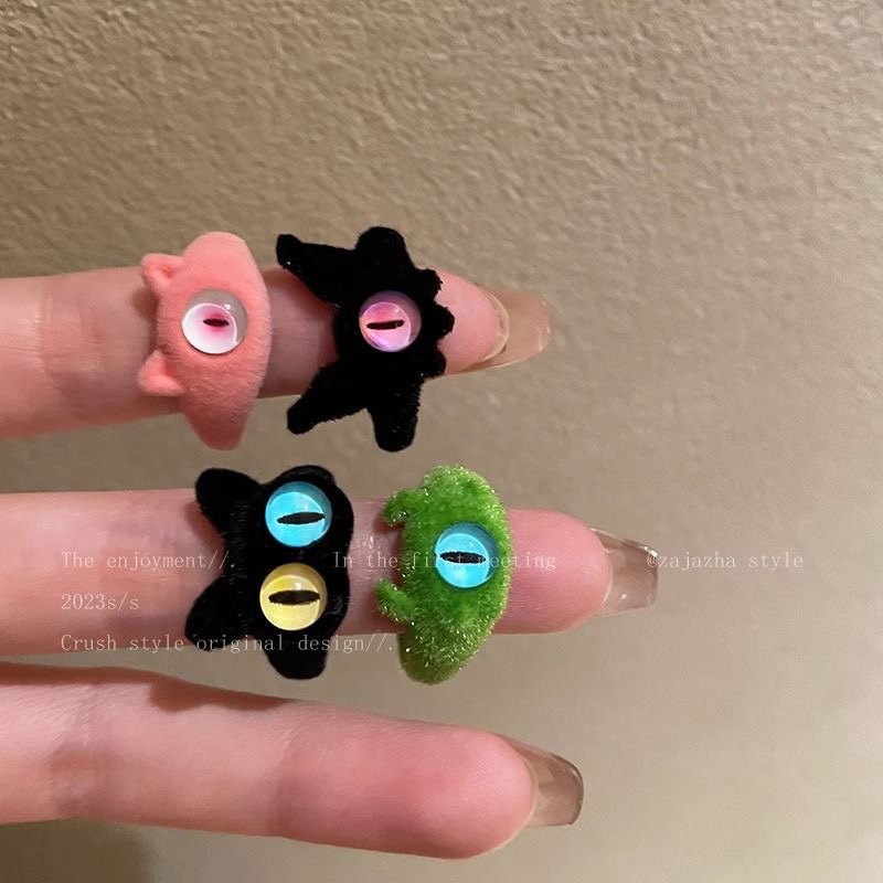 Flocked Autumn and Winter Cartoon Cat Eye Little Monster Ring for Women, Funny and Cute Index Finger Ring, Open Trendy Hand Jewelry Wholesale