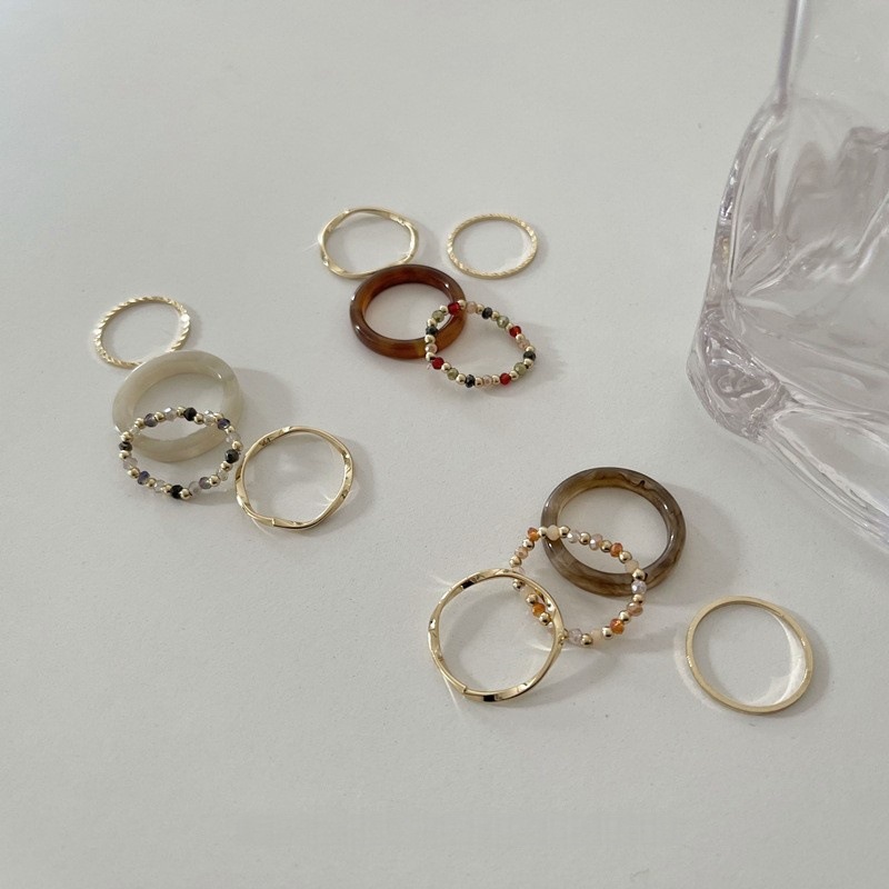 French Retro Ins Colorfulful Beaded Resin Acetate Plate Ring Set Women's Personalized Index Finger Ring Wave Ring