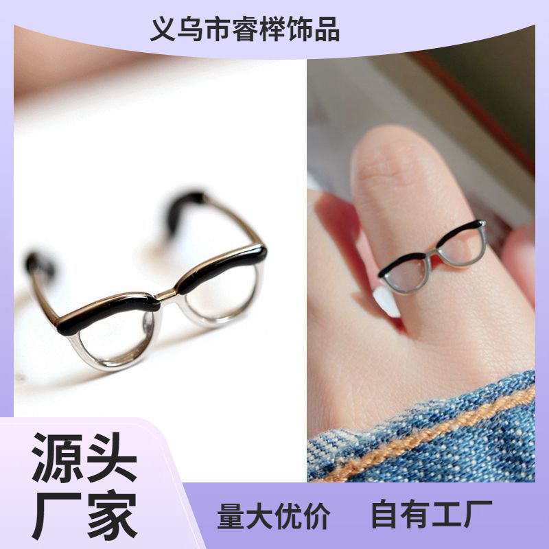 Cute Glasses Baby ~ ins Japanese and Korean Mori Girl's Open Ring Adjustable Enamel Colored Finger Ring Buckle Tail Ring