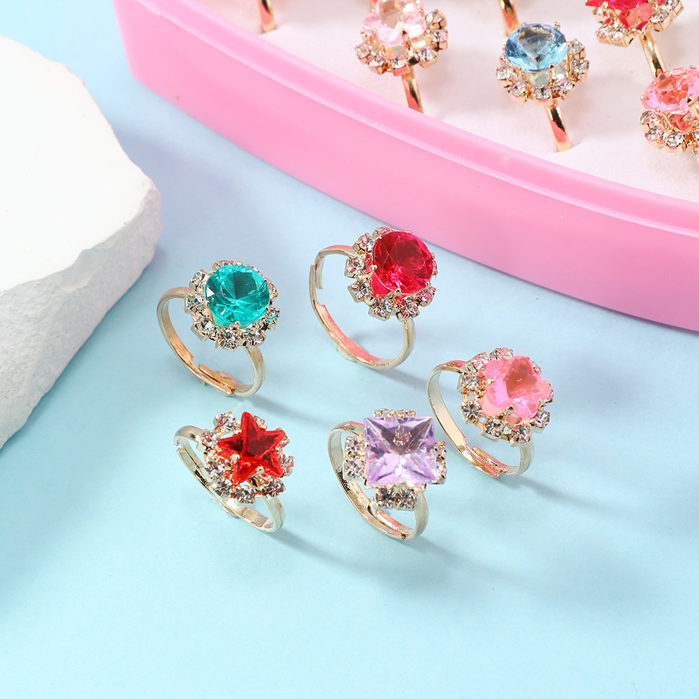Cute Princess Ring Kindergarten Baby Imitation Crystal Colored Diamond Gemstone Open-Ended Children's Jewelry Girl's Toy