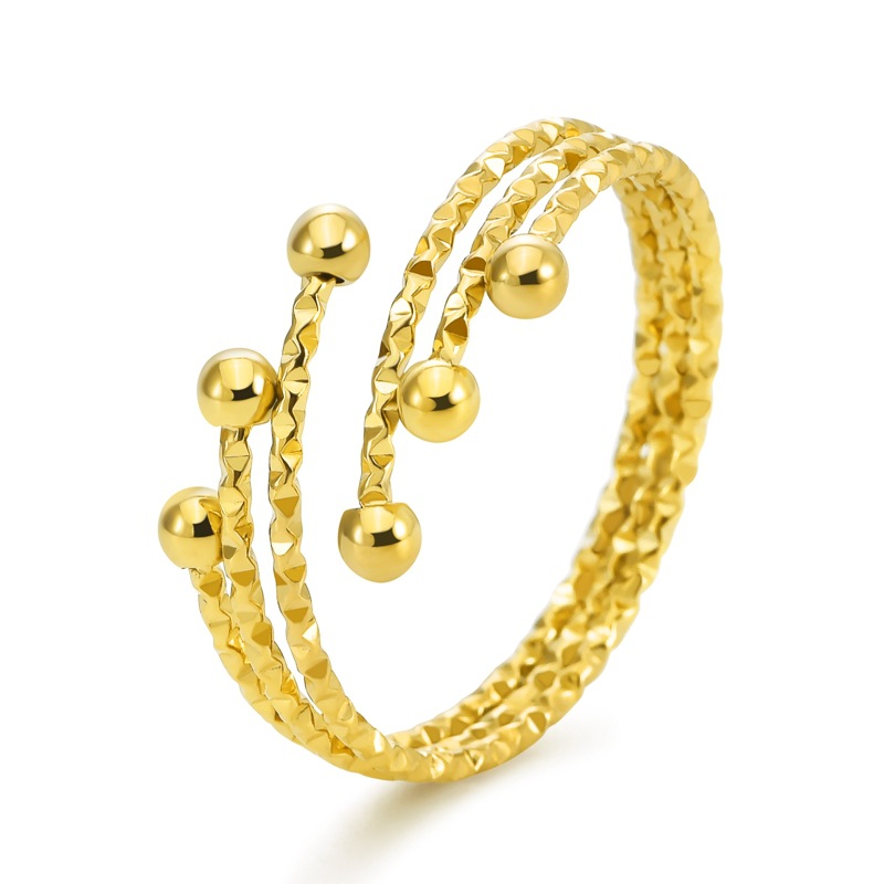 European and American New Elastic Open High-grade Women's Three-layer Stainless Steel Transfer Bead Ring 18K Simple First Jewelry