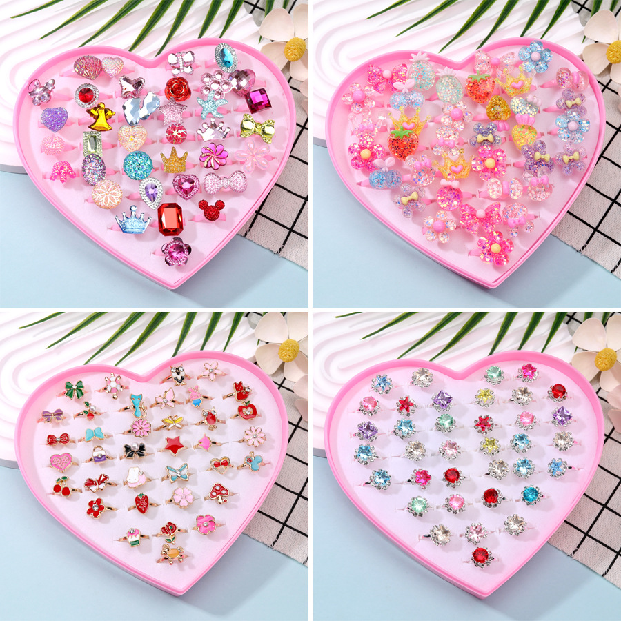 Factory Direct Supply Girls' Play House Hand Ornaments Ring Boxed Kindergarten Cartoon Gemstone Jewelry Toys Children's Rings