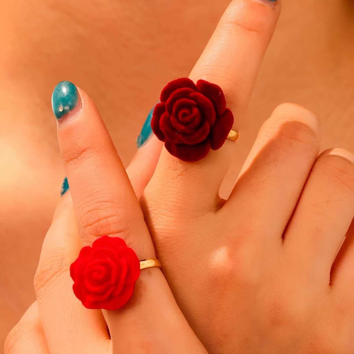 Single Retro European and American Fashion Design Flocked Flower Open Ring for Girls