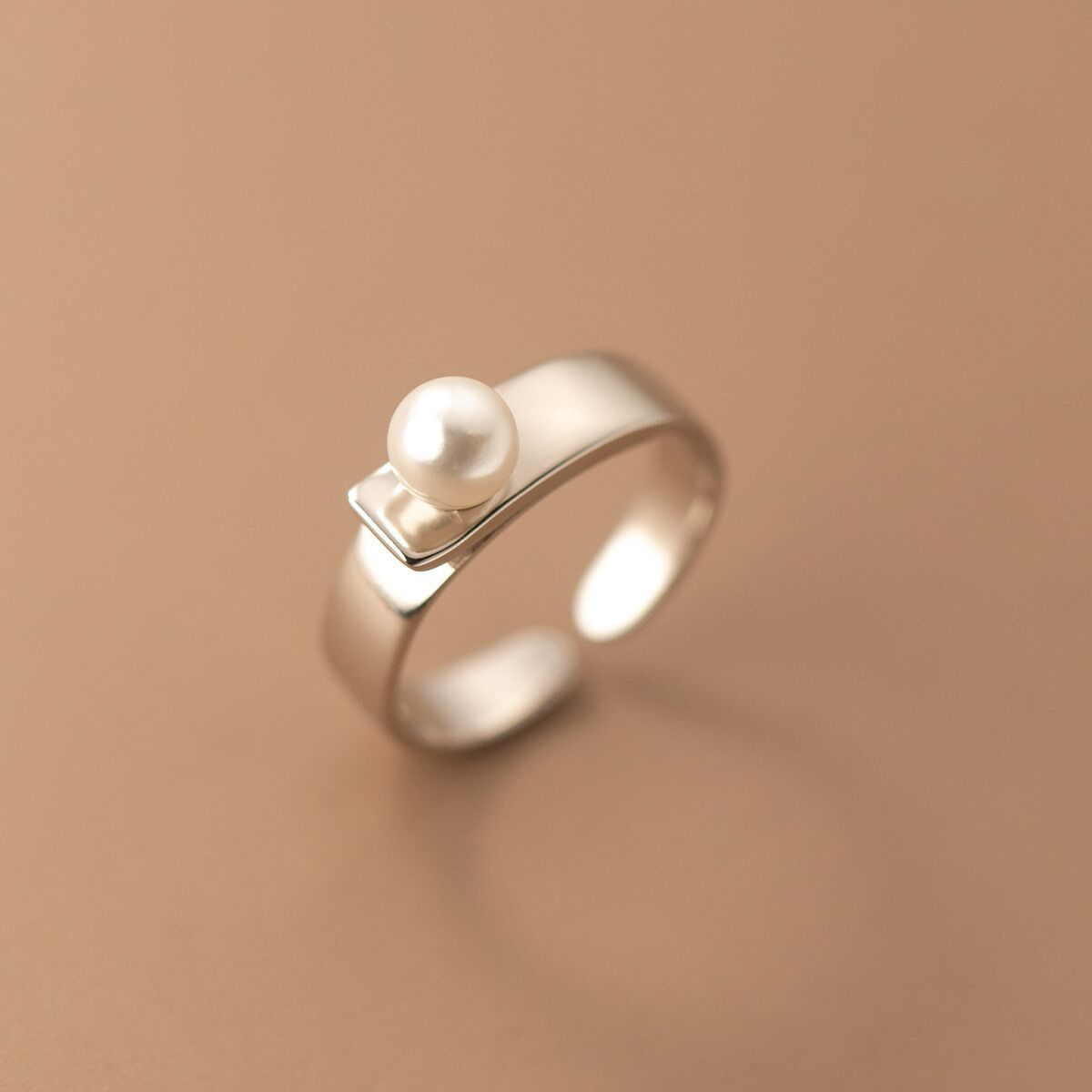 01976 Korean Style Simple Glossy Pearl Ring Women's Elegant Literary Accessible Luxury High-End Ins Open Index Finger Ring
