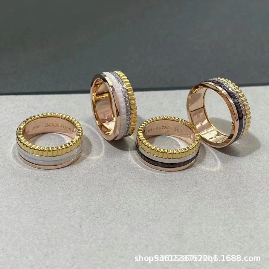 High Version V Gold Gear Rotation Time Rings Ring Women's Wide and Narrow Version with Diamond CNC Black and White Ceramic Carving Couple
