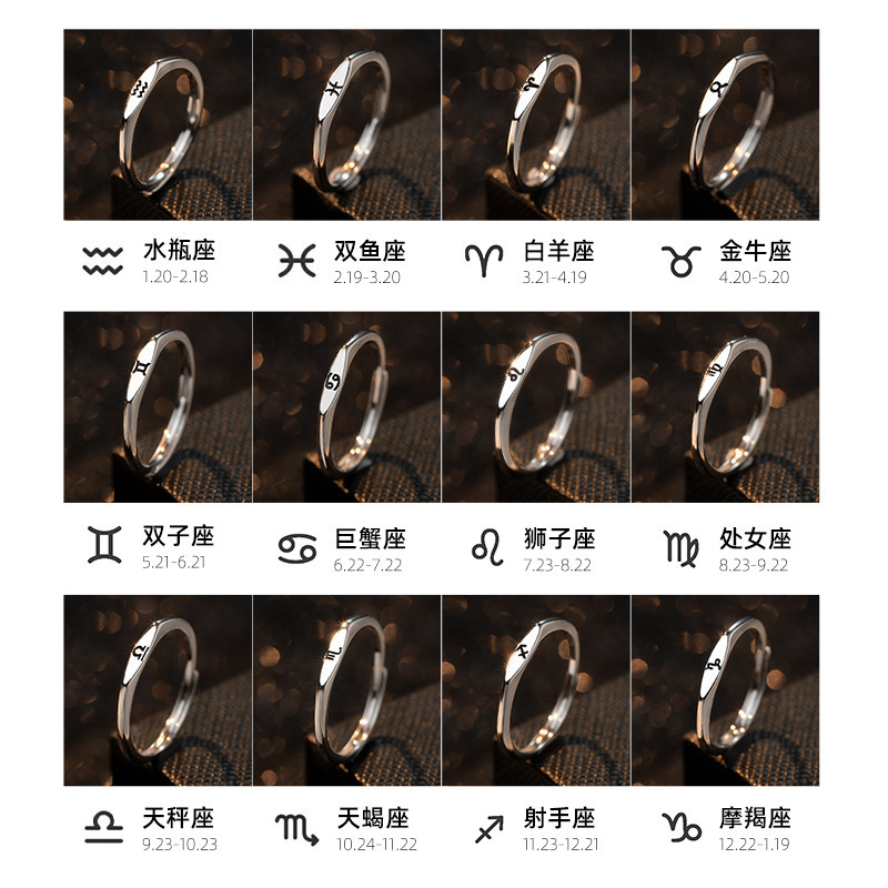 Fresh simple twelve constellation open ring single exclusive ring female simple open Index ring fashion hot